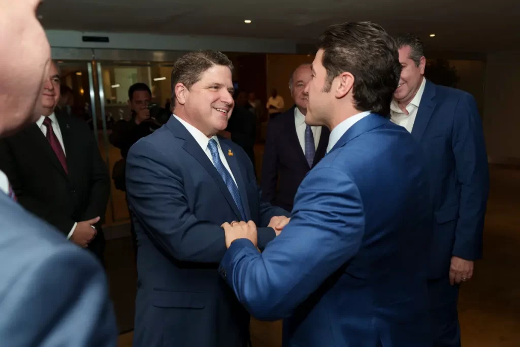 El Gobernador expresó su respaldo al nuevo Presidente de CANACO Monterrey y reconoció la labor del Lic. Fernando Canales Stelzer, Presidente saliente, destacando su compromiso y liderazgo en favor de la comunidad empresarial. Asimismo, reafirmó que su administración continuará impulsando el crecimiento económico a través de su plan de desarrollo basado en seis ejes estratégicos, entre ellos la simplificación de trámites y el fortalecimiento del apoyo a las pequeñas y medianas empresas